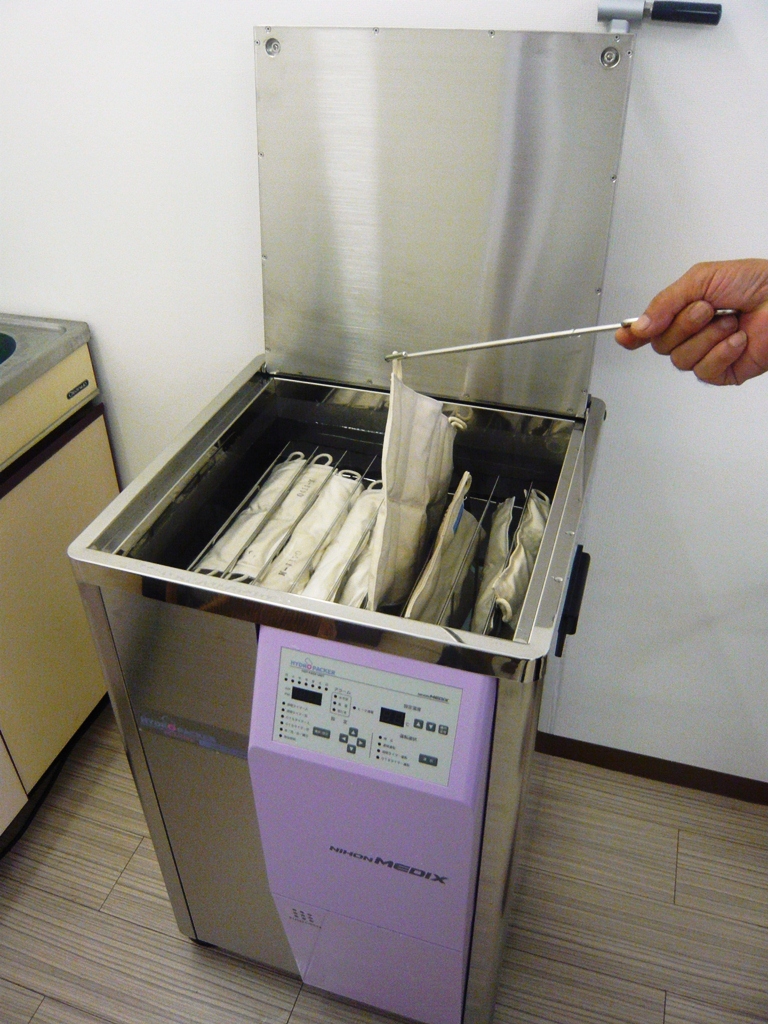 70~80℃のお湯の中で温められたパックをタオルに包んで患部に当てます。